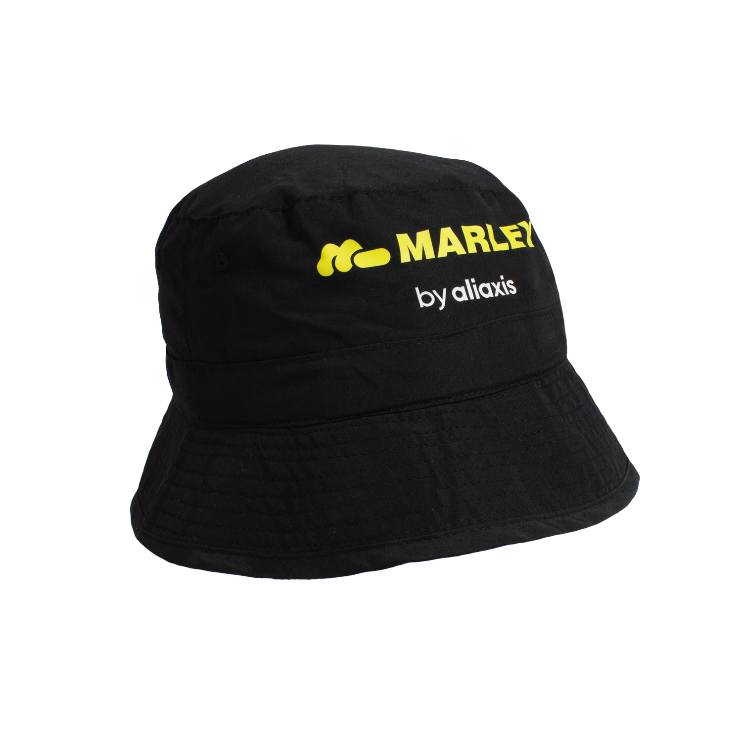 140gm microfibre bucket hat with elastic draw-cord around crown with toggle. Cotton sweatband and lining.
